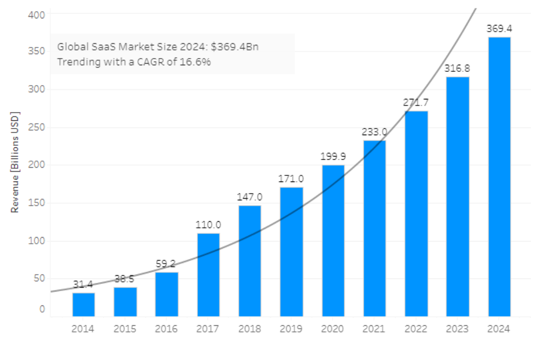 지난 10년 간 j커브를 그리며 급격한 성장을 거듭하던 saas시장은 이제 성숙기에 접어든 모양새입니다. 불과 10년 전 30조원 가량의 글로벌 saas시장 규모는 현재 400조 이상의 규모로 성장하였고 이제 해외 뿐 아니라 국내에서도 해당 시장을 주목하고 saas 산업을 집중 육성하고자 하는 움직임이 감지 되고 있습니다. 또한 일부 거대 공룡 기업이 독점하고 있는 클라우드 인프라 사업이나 플렛폼 분야와는 달리 아직 독점하고 있는 업체가 없어 많은 투자사 또는 국가에서 관심을 가지고 있습니다.